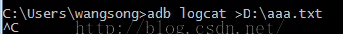 2.打开我们的app进行操作,当你操作完成之后,按下Ctrl+C,停止该命令的执行,这时打开D盘,就会看到日志文件都存在了aaa.txt文件里。