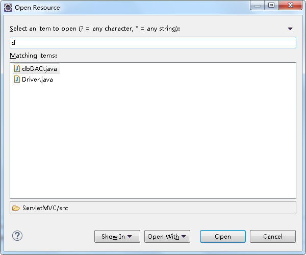 此时,你直接使用Ctrl+Shift+R就可以唤出文件查找窗口。这是根据文件名来找文件,如下图,只要输入你需要寻找的文件名,就能得到相应的寻找结果。