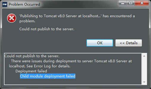 更新了MyEclipse2015,添加了一个本地的tomcat8,如果不添加项目或是添加一个空的web项目,tomcat是可以正常开启的,但是添加了现有项目之后错误如下