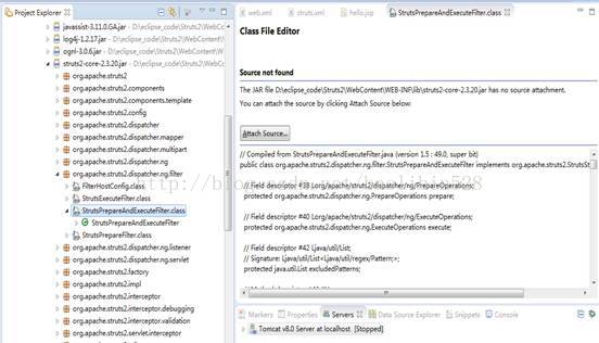 2、进入struts2-core-2.3.20.jar,双击之后,看不到源码