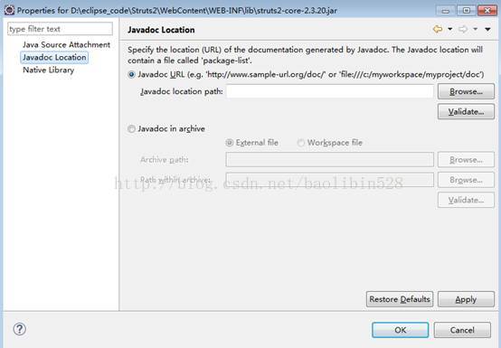 1、依旧右键struts2-core-2.3.20.jar,选择Javadoc Location。