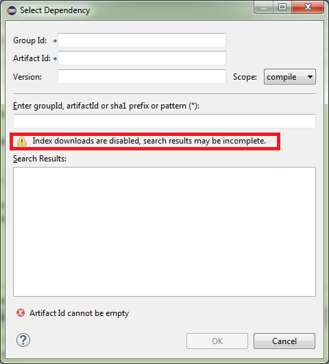 eclipse maven 视图界面添加依赖包时,不会自动搜索怎么处理