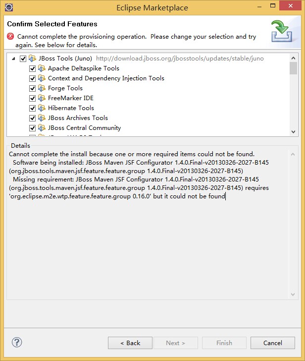 eclipse juno版本的jboss tools安装失败