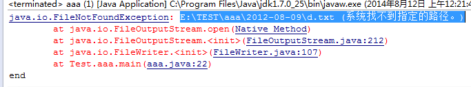 当我把路径写成:E:/TEST/aaa/d.txt 时java程序不报错.