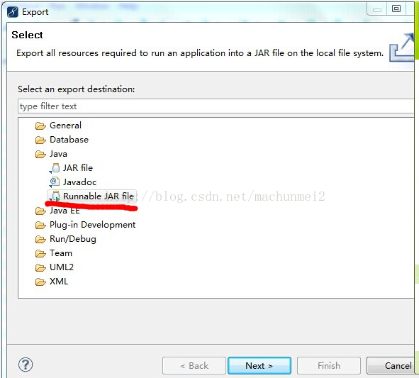 选择runnable jar file,而不是jar file(我的myeclipse版本是6.5,没有这个runnable jar file选项)