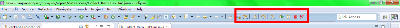 有一次运行程序的时候,不小心按成了debug,结果eclipse的工具栏之后就一直像下面这样了: