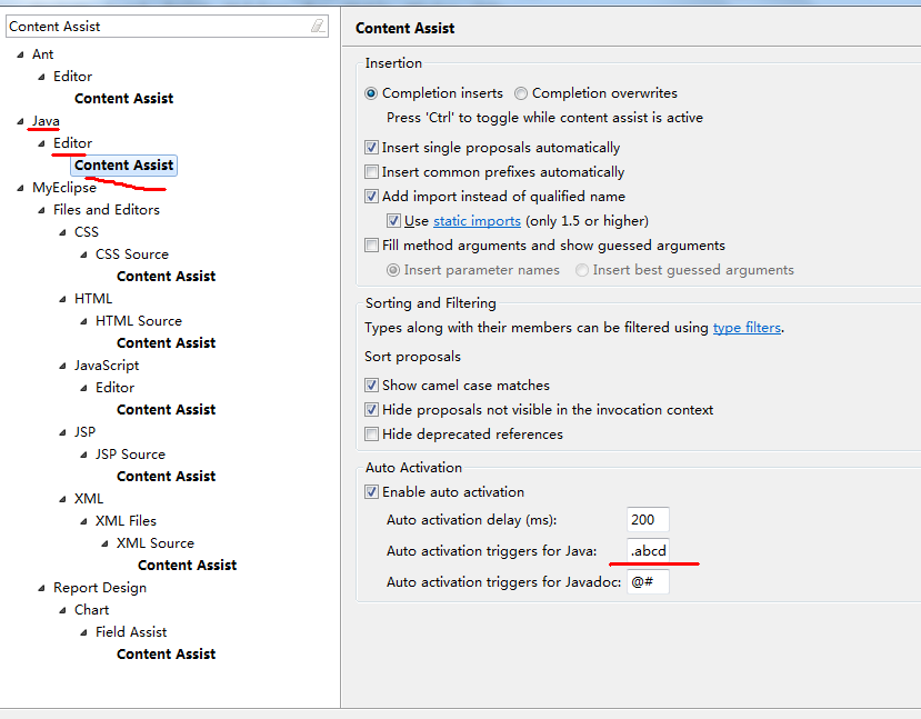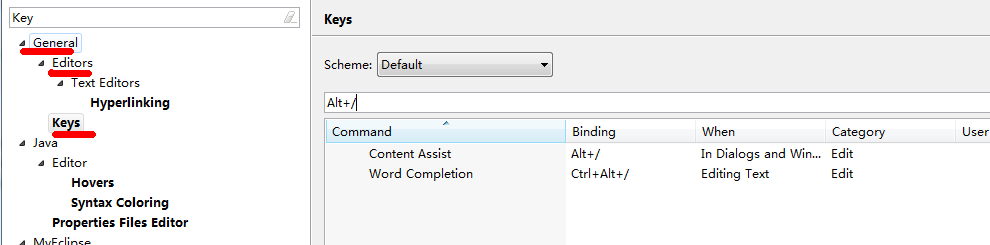5.自动完成和快捷键,请搜索Content Assist和Key