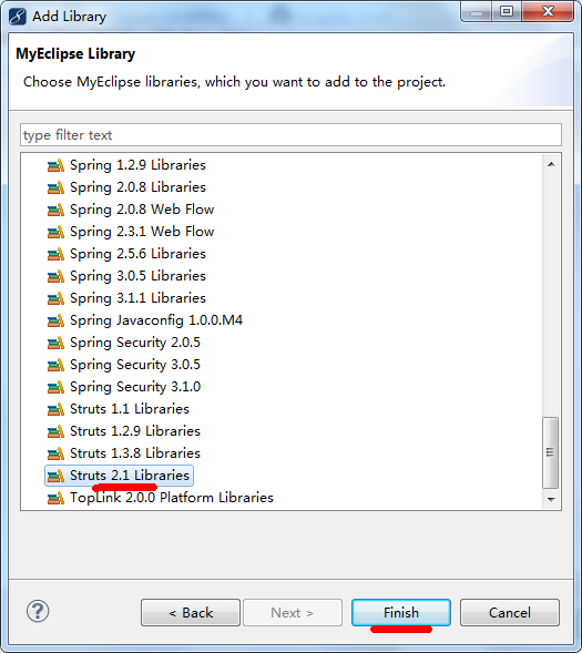 6.添加MyEclipse自带的Struts2等支持包