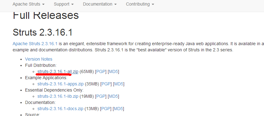 首先,去struts官网下载完整包,内有文档及源码。