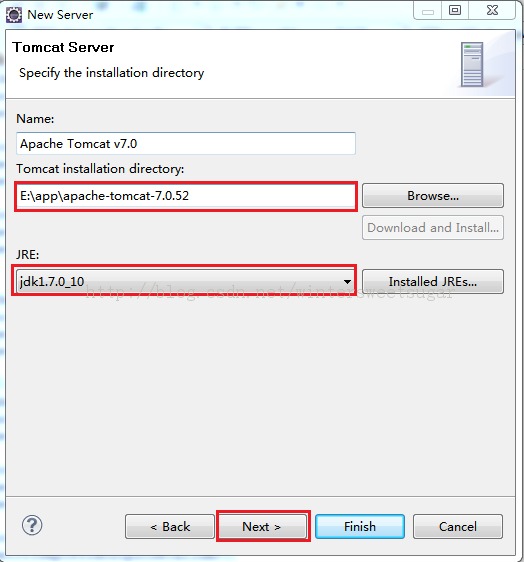 5、选择Tomcat安装的目录,以及已安装的JDK