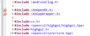 想把用C写的东西通过jni调用在android平台上运行,上图的openni的一直包含不进来,弄了很久了,求各位大神讲解啊。。。。