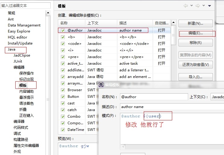 eclipse中@author怎么改,每次按照提示总是出来这个 @author Administrator,