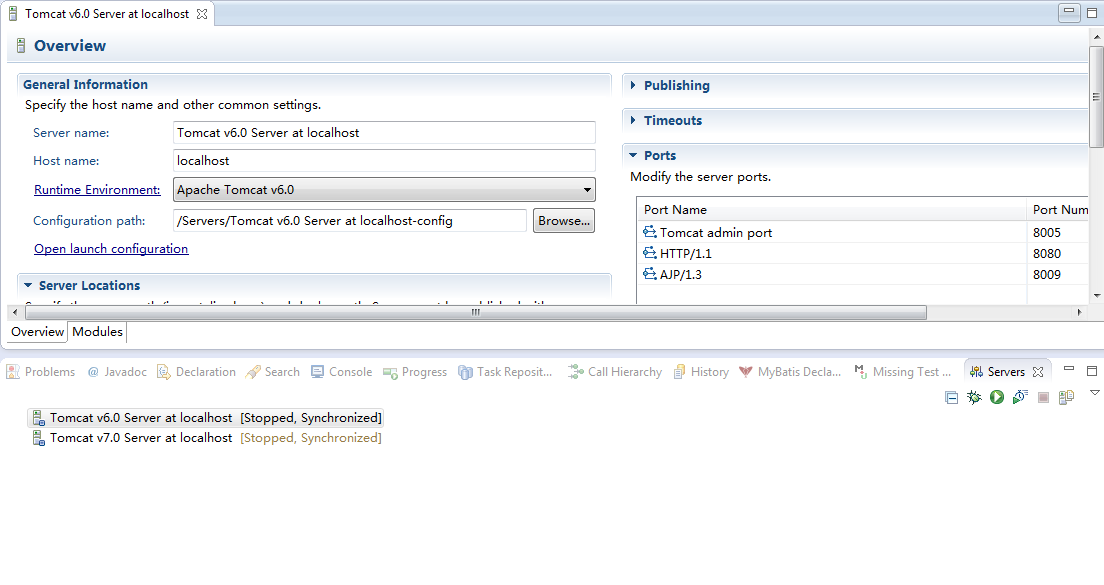 通过Servers视图窗口,管理Servers下服务器的配置及运行