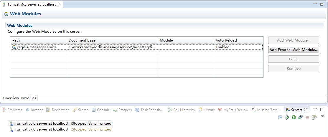 添加Tomcat Modules,这个将在tomcat的server.xml中添加context映射