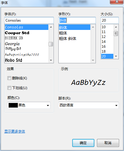 4、此处设置编写代码处,代码的字体样式,设置完点确定即可。