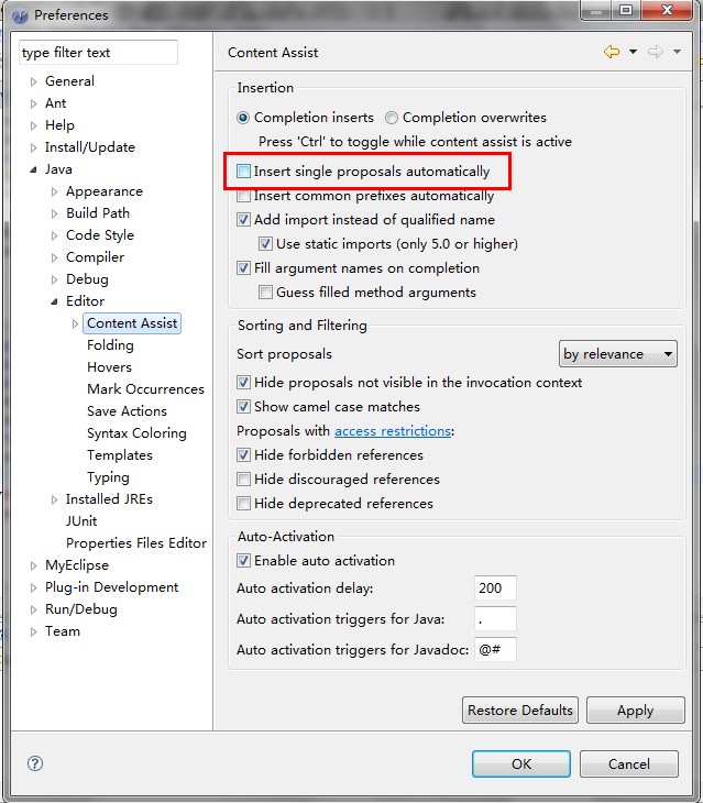 eclipse和myeclipse中如何关闭自动补全括号,花括号,双引号等功能