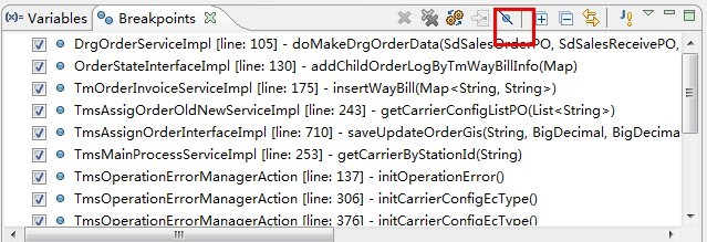 进入debug的试图,之后会有一个Breakpoints,点进去,之后会有一个这样的图标,你点击下,之后所有的断点就屏蔽了!
