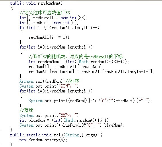 redNum[i] = redNumAll[randomNum];//对redNum初始化,初始值是redNumAll中的任意六个值