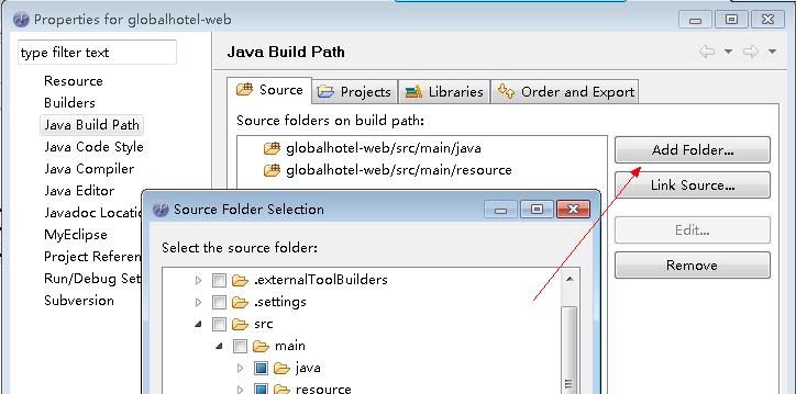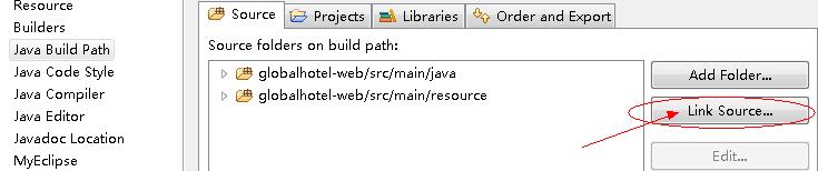 在工程属性,? Build Path 里面添加资源文件的目录, 需要添加 java 文件夹和 source 文件夹 。