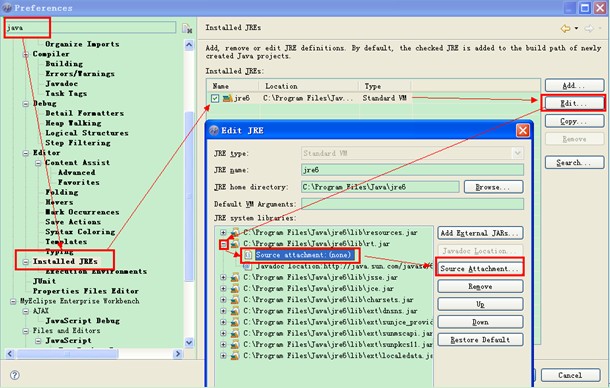 在MyEclipse中添加Java、Struts...源码