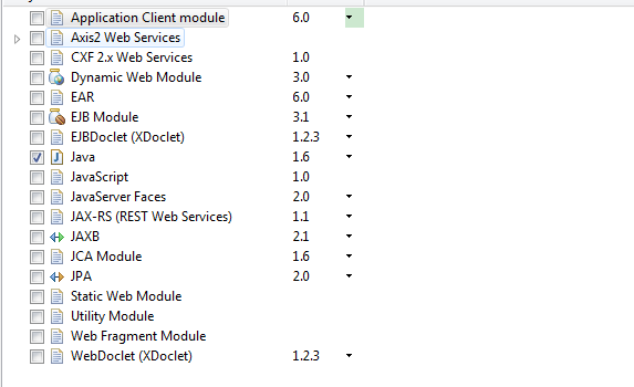 选中项目,点击鼠标右键。选择Properties – > Project Facets