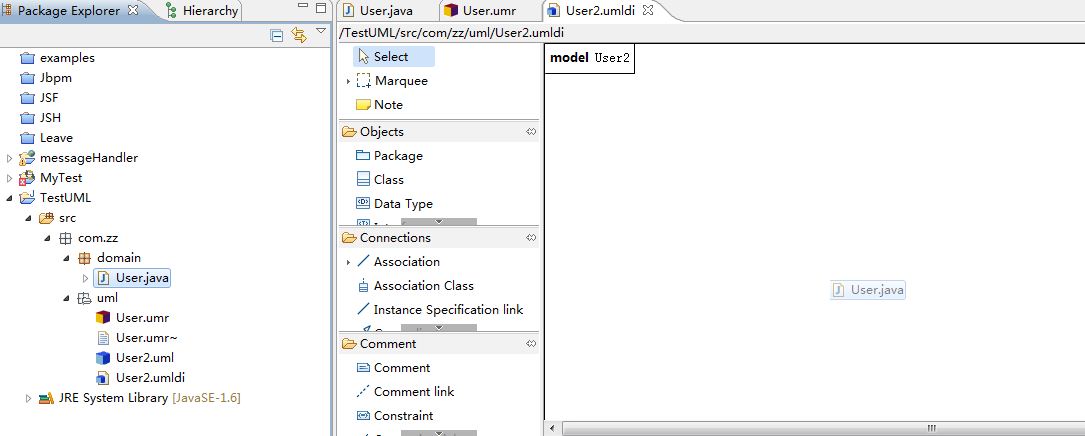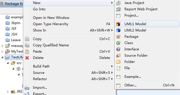 2.打开MyEclipse UML 透视图,新建Uml1,如下