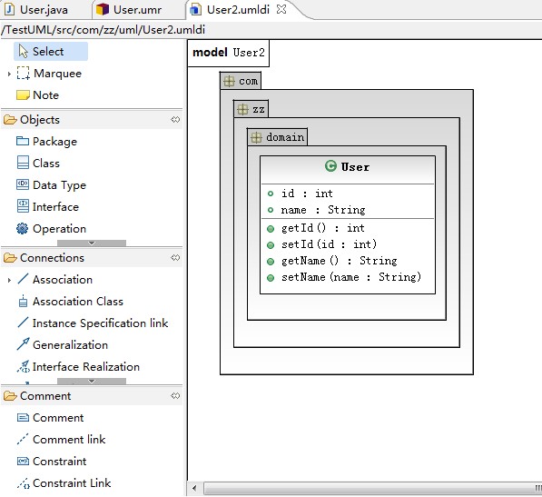myelipse里有UML1和UML2两种方式,UML2功能更强大,但是两者生成过程差别不大