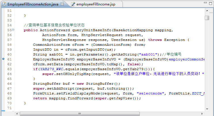 在Eclipse代码编辑栏左侧的数字栏中,双击,就可以增加断点了。