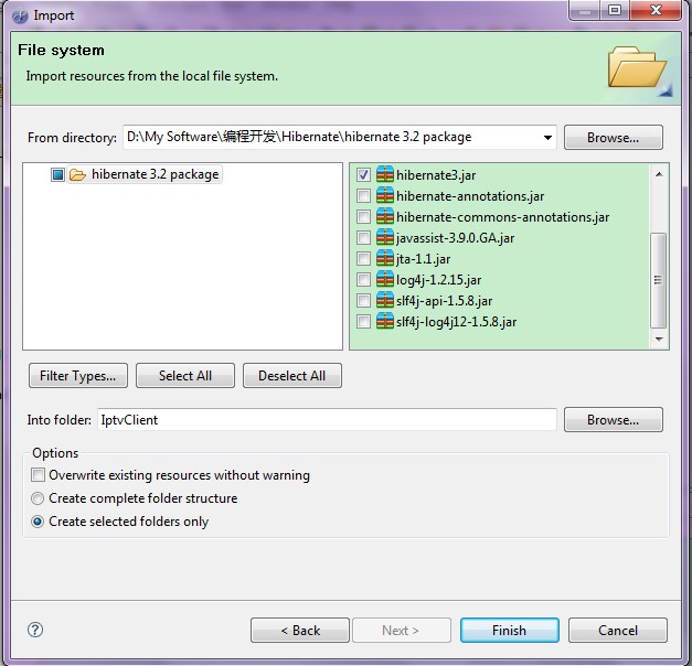 2.选择包含Jar包的文件夹--------->Finish;