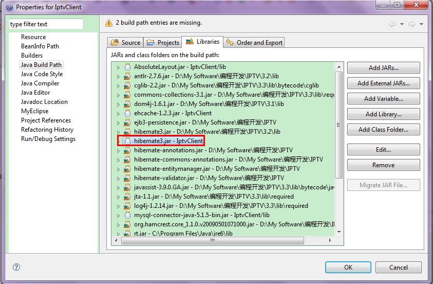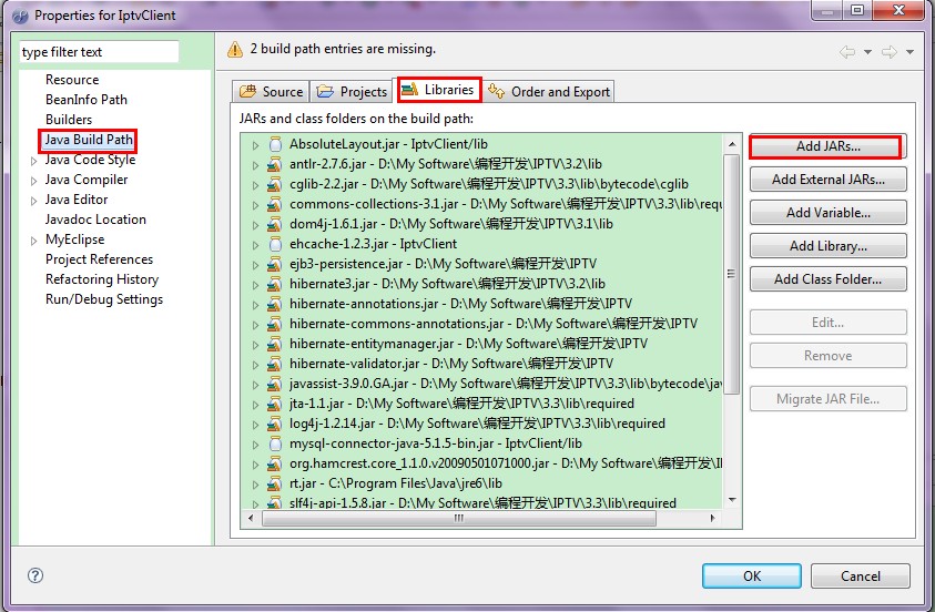 问题:MyEclipse 工程使用相对路径导入Jar包