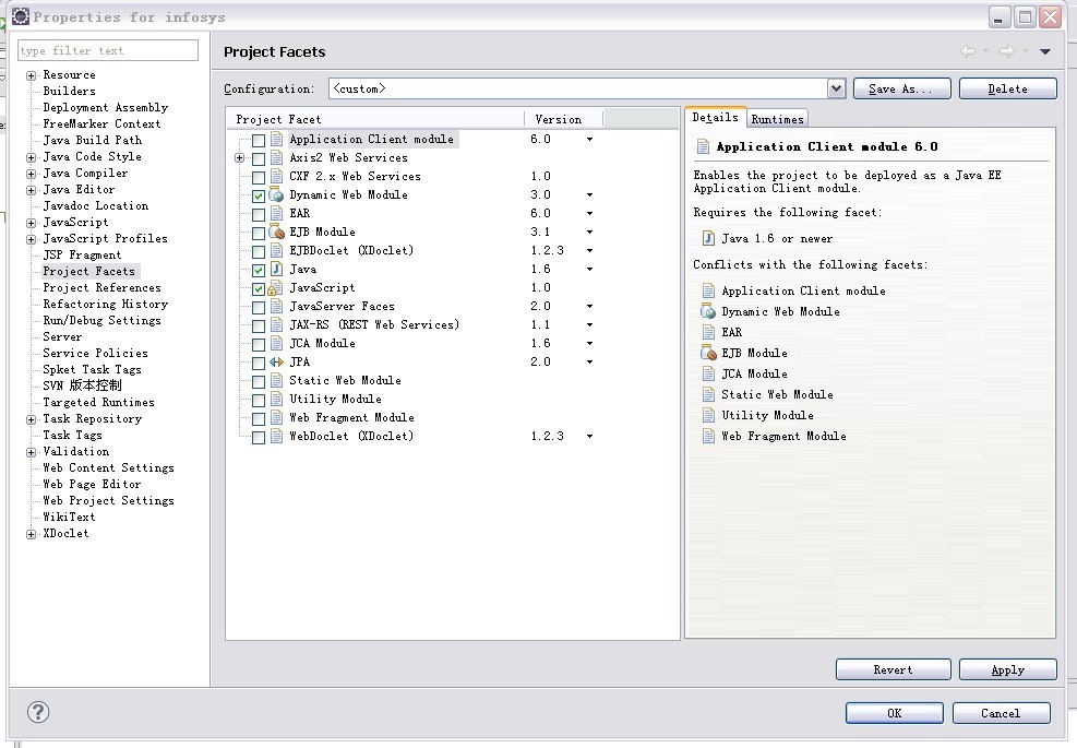 在eclipse右击工程properties->Project Facets 出现如下图: