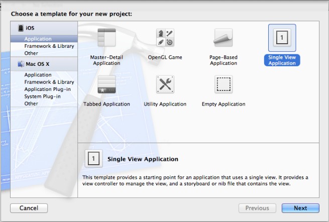 ?? 2.选择Single View Application模板,单击Next: