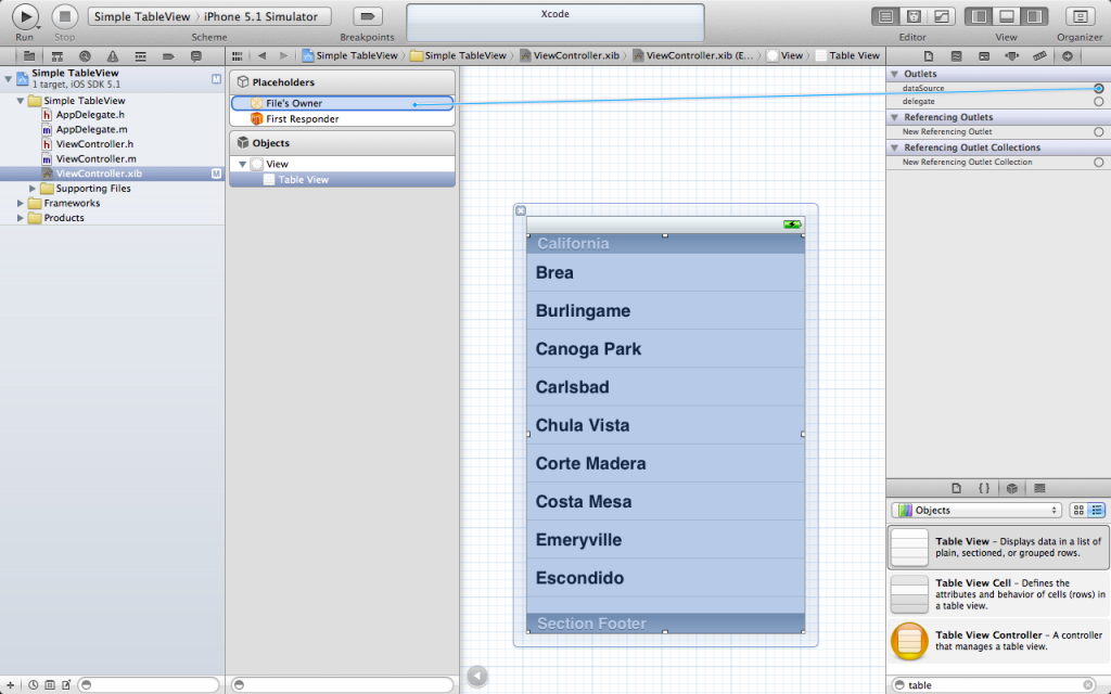 ? 5.为控件Table View添加数据、方法委托: