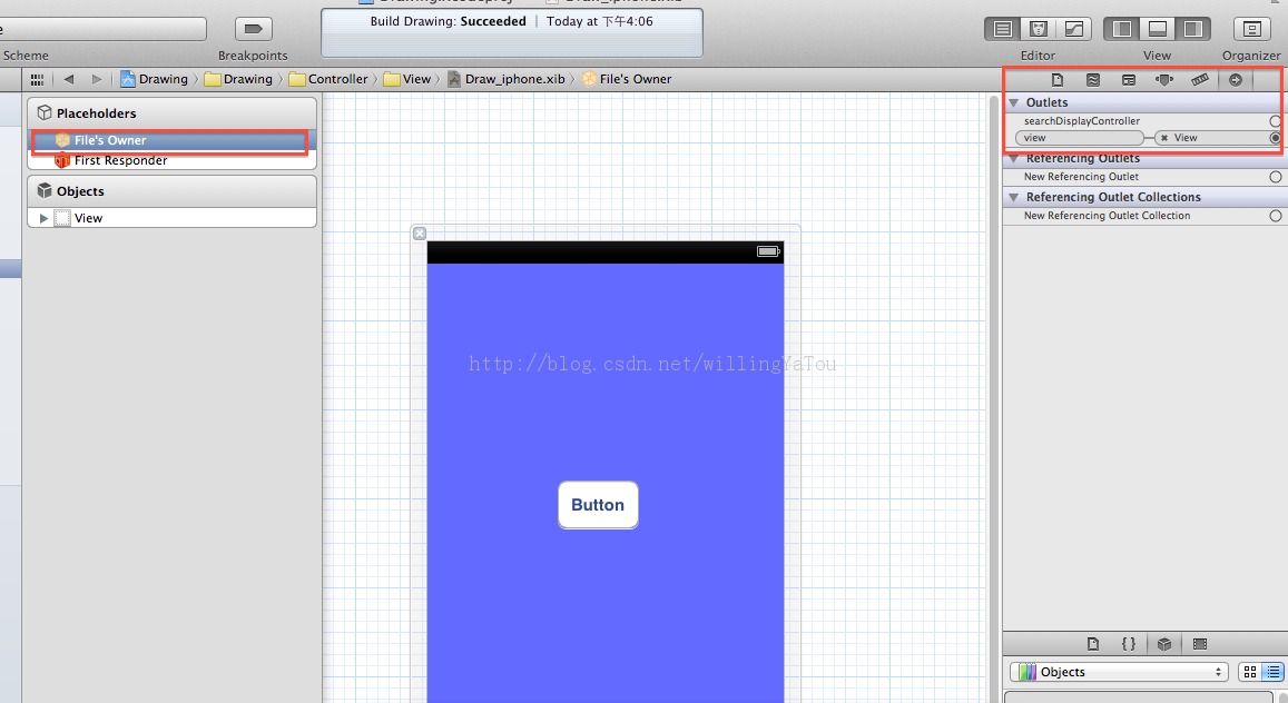 原因何在???我忽略了一个很简单但经常犯的问题。我创建的是空工程,控制器是我手动添加的,xib也是我手动添加的。这里xib和控制器就没有关联。这里的view要属于一个控制器,才可以做事情。