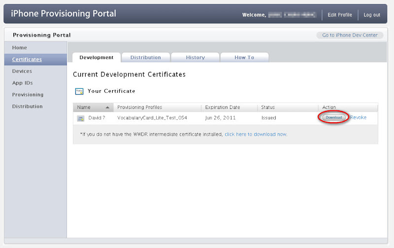 若還沒裝過WWDR憑證(Apple Worldwide Developer Relations Certification)的話,下面那個Download連結也要點。點了之後會下載一個名為?AppleWWDRCA.cer?的檔案。
