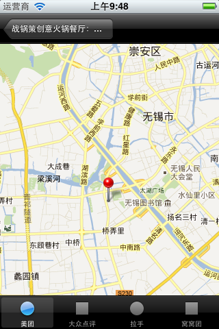 这里因为美团提供了地图坐标,所以我们也加入了MapKit来显示店铺所在位置,但只有美团有,其他几个网站都没有提供。
