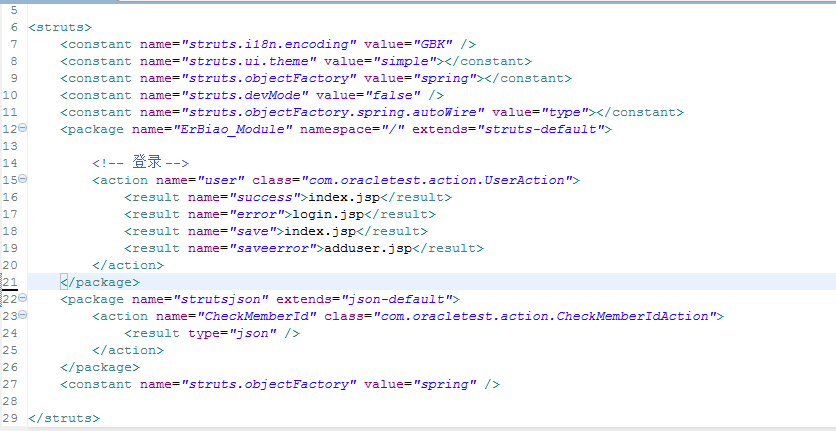 Unable to load configuration. - bean - jar:file:/C:/Program%20Files/Apache%20Software%20Foundation/Tomcat%206.0/webapps/OracleTest/WEB-INF/lib/struts2-core-2.1.8.1.jar!/struts-default.xml:29:72