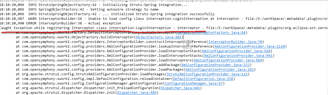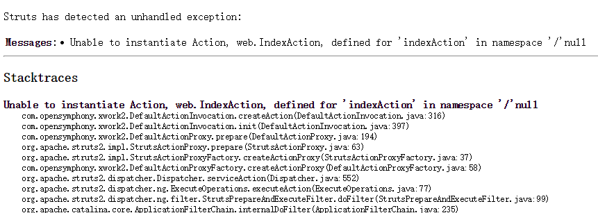 Unable to instantiate Action, ....action.CertAction, defined for '...' in namespace '/...'null