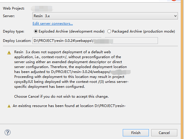 用resin部署项目时出现这个警告,是什么意思?