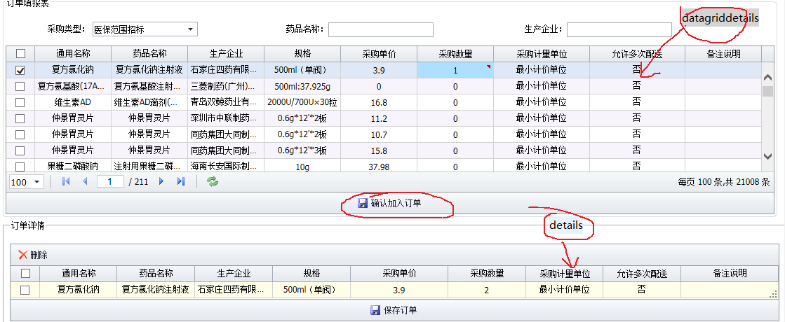 其次,你的累加方法有问题, 上面的用if判断,数量的话就用下表药品数量+=1;