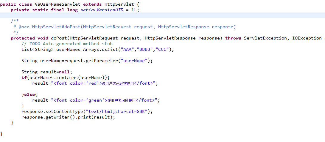 你确定你的web.xml中的serlvet的路径中你的项目名+vaUserName?