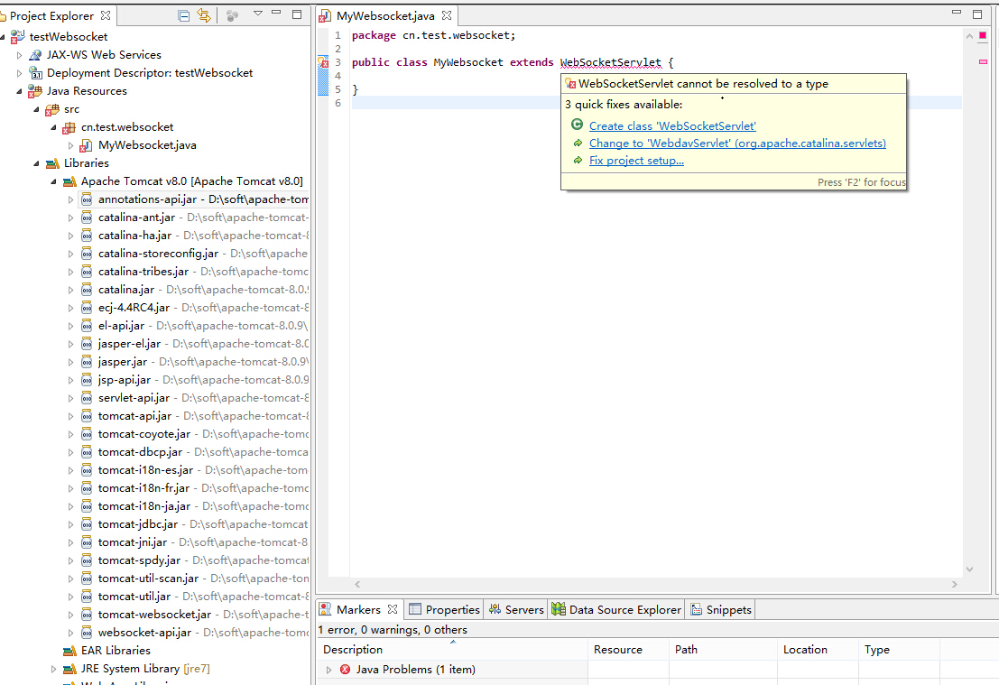 >> Tomcat的WebSocketServlet为什么用不了,不是说自带的吗?为什么小弟我都继承不了对应的类?如图,大神