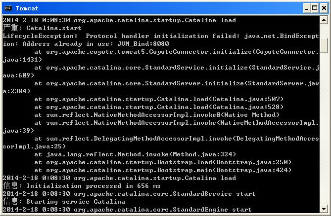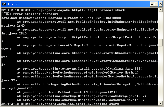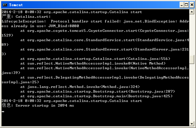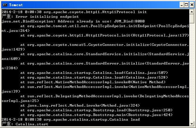 8080端口被占用,楼主把占用8080的进程kill掉,然后重启Tomcat就行了。。