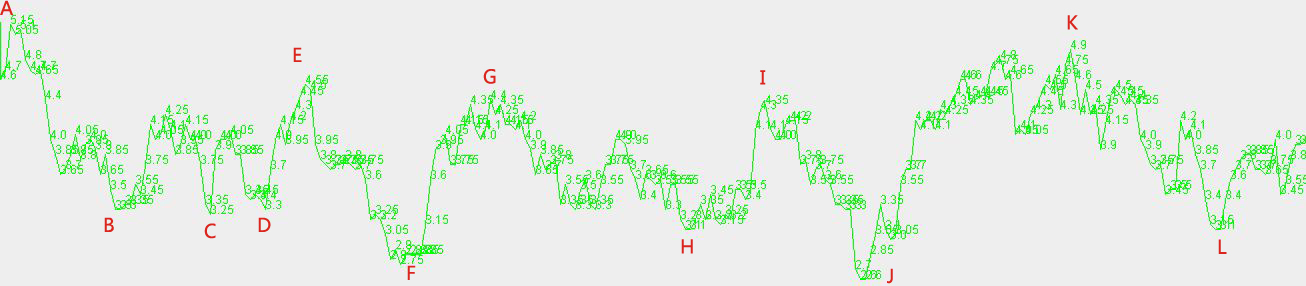 对于任意给出的一组随机数列,求出离给出点和指定区间(即给出点往前多少个单位)最近的上波浪或下波浪,结果表示为两个点的坐标。