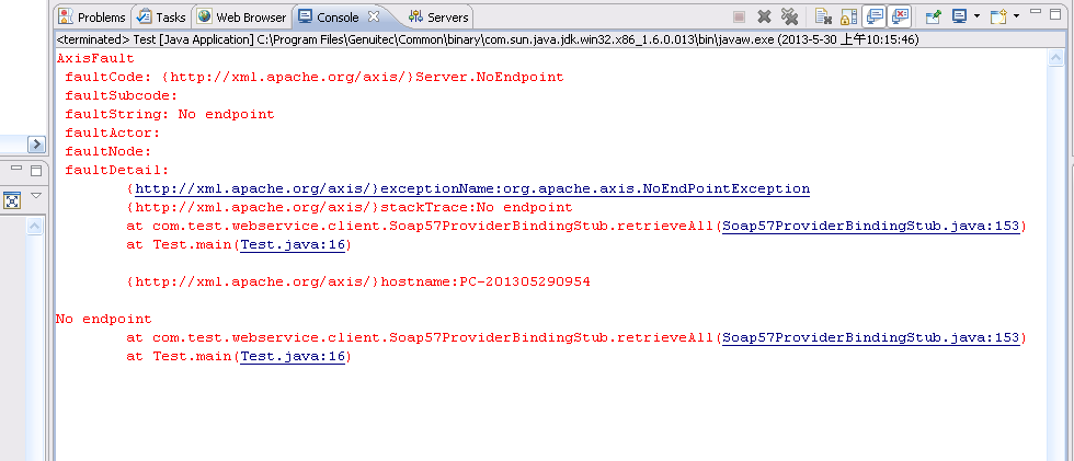 >> wsdl2生利润地类后运行代码出错,高手来看下