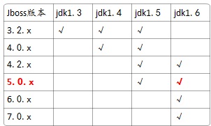 JBOSS的版本跟JDK的版本会有冲突,以下是我总结的两者之间的版本匹配列表: