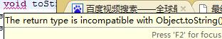 当你写toString方法时,它会以为你想覆盖Object类的toString方法,所以要求返回值是String。