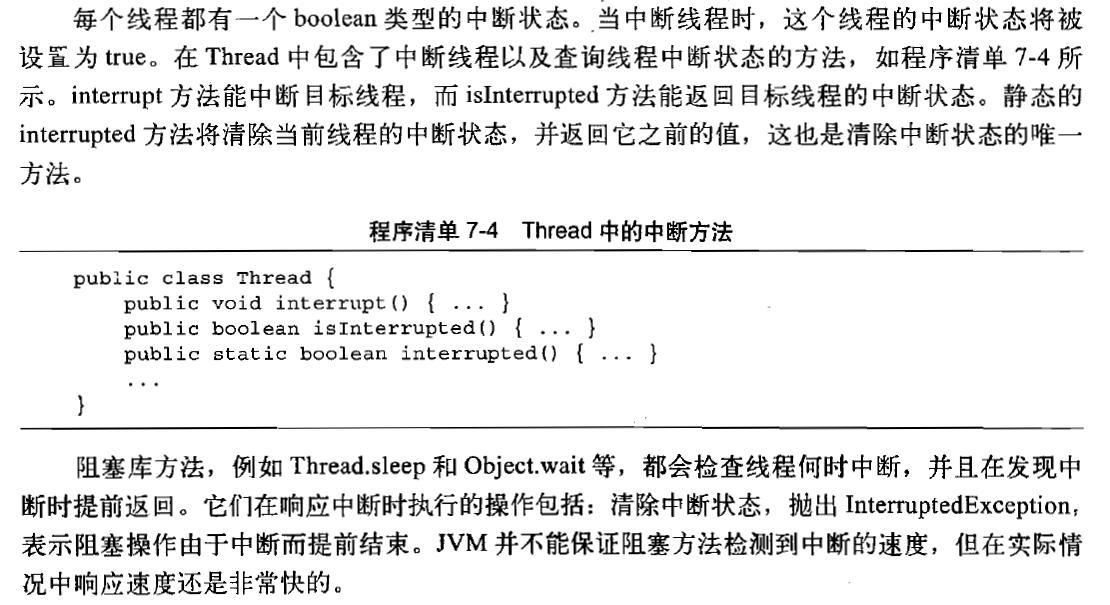 (1)对于非阻塞中的线程, 只是改变了中断状态, 即Thread.isInterrupted()将返回true;