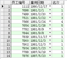 如上图所示:上表反映了每个员工的雇用日期,并以每月雇用的顺序排列名次。