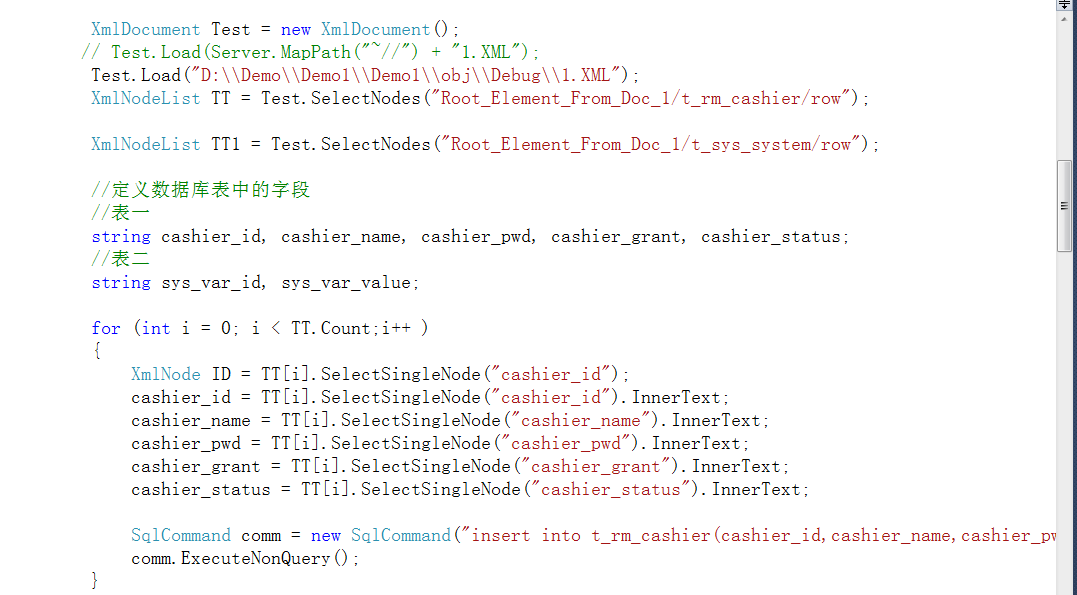 ...//读完一列的处理,此处可根据需要并写一个Sql串或做相应的处理